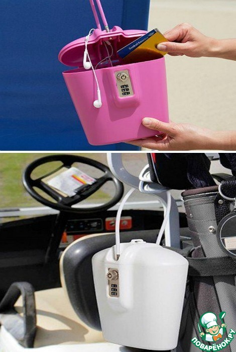 Небольшой портативный сейф, выполненный из пластика и оборудованный надежным кодовым замком, прекрасно подойдет для хранения ценных мелочей на пляже и защитит их от влаги и песка.