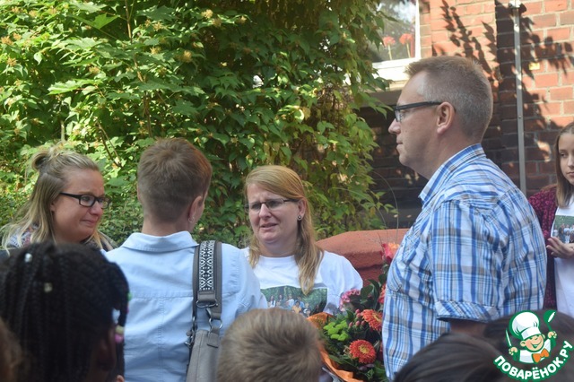 Слово берёт родительский комитет - горячо и опять со слезами произносят благодарную речь и дарят нашей дорогой фрау Бранс и фрау Гросс цветы.