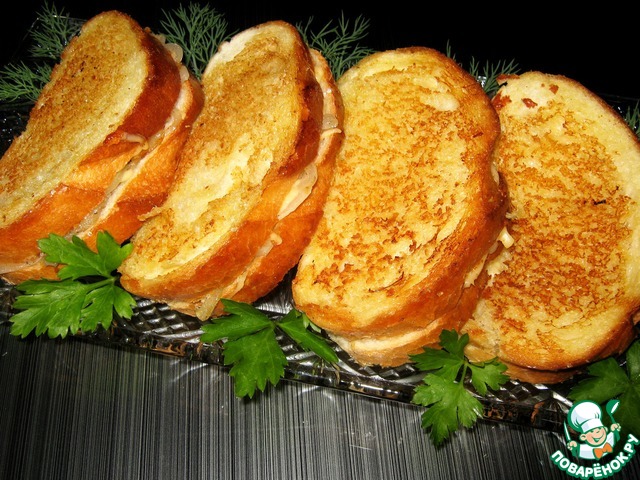 Очень-очень вкусные бутерброды! Хрустящая корочка со сливочным вкусом и нежная сырно-луковая начинка! Просто объедение! Понравилось, обязательно буду готовить ещё!