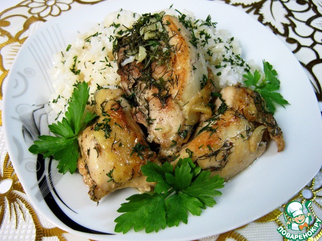 Блюдо очень вкусное получилось и готовить его быстро и нехлопотно. У меня окорочка, я их поделила на кусочки. Аппетитная румяная корочка и нежное сочное мясо внутри! Вкуснейший соус, которым я полила рис. Прекрасное ароматное блюдо! Нам очень понравилось!