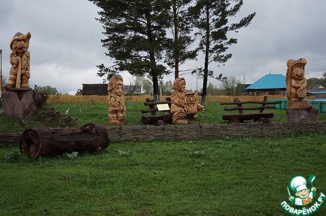 В деревне несколько колодцев, и у каждого своя фигурка. Я сфотографировала только русалку, а есть еще гном и домовенок.