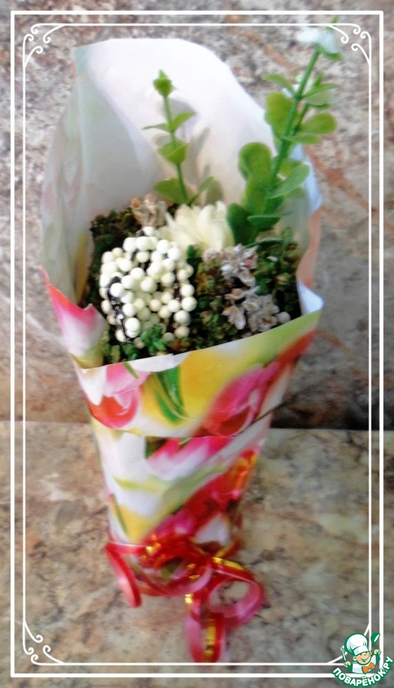 Смотрим дальше: милейший букетик! Как Машенька красиво оформила! Будет украшать очередной фото-отчет по рецептам!