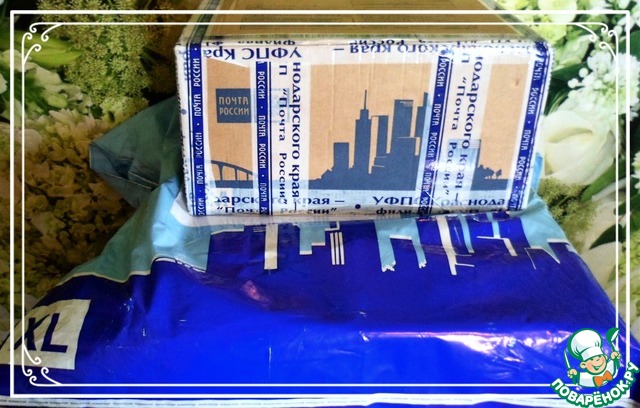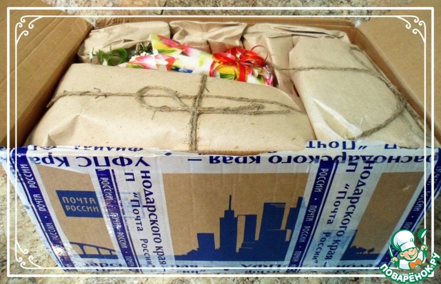 Перед моим днем рождения приходит мне СМС от подруженьки Машуленьки /Mary Stone/, чтобы я прогулялась на почту. В будни я отъехать не смогла, поехала в субботу с утра. Называю фамилию на почте (во у нас прогресс, даже номер и извещение не надо!), и выносит девушка коробку и еще огромный пакет! Смотрю: обе посылки из Краснодара от Машеньки!