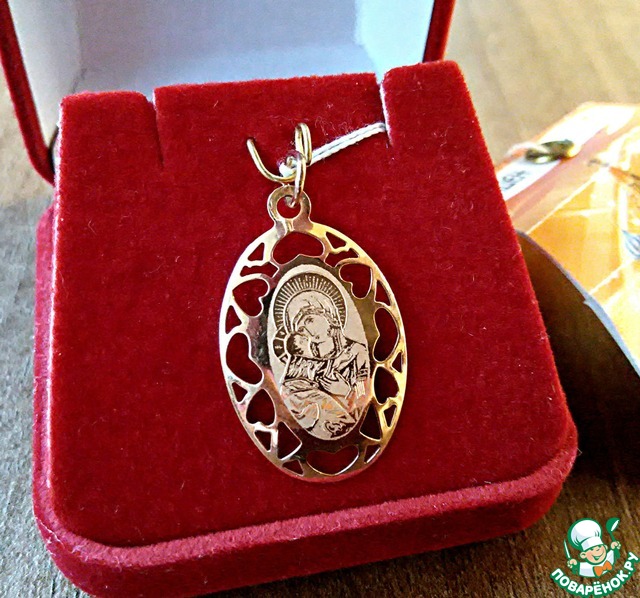 Золотая подвеска с образом иконы Божией Матери Владимирская