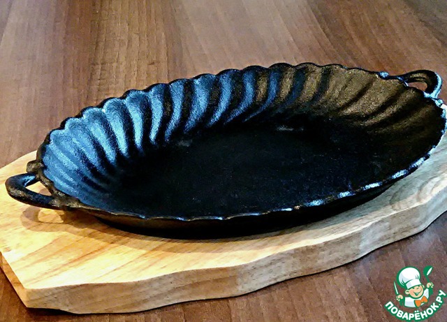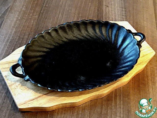 Потрясающая чугунная сковорода на деревянной подставочке