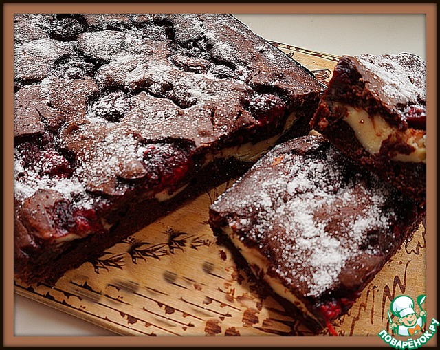 Брауни-чизкейк с ягодами от Ларисы Seagull_L. Интересный рецепт. Вместо вишни у меня малина. Очень шоколадно и вкусно!