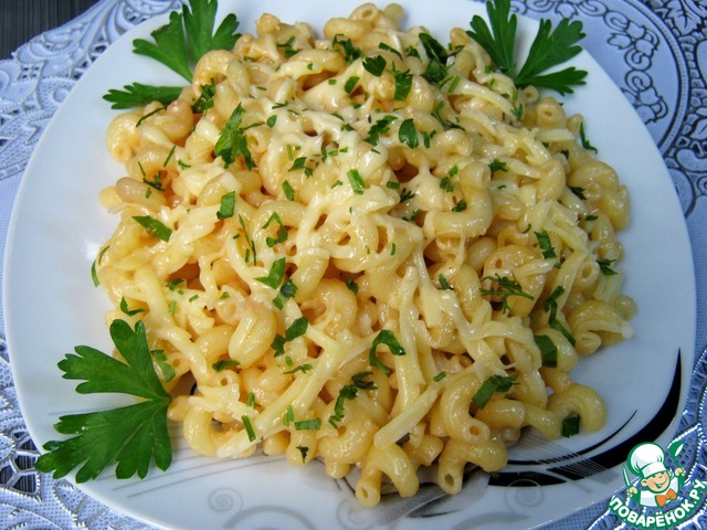 Чудесные макароны, нежные, со сливочно-сырным вкусом! У меня с кетчупом и домашней сметаной. Замечательный гарнир!