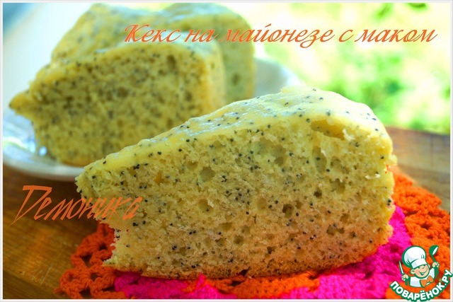 В этом варианте у меня не было кефира. Я налила полстакана майонеза и долила тёплой водой. В тесто добавила мак. И сидела-боялась, пока это дело пеклось в мультиварке. Но результат отличный.