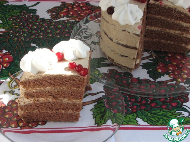 https://www.povarenok.ru/recipes/show/94052/ Совершенно нехлопотный рецепт! Коржи выпекала по одному в духовке. У меня получилось 4 коржа диаметром 20 см. Очень понравился совет с заворачиванием бисквита в пленку: коржи стали влажноватыми, никакая пропитка не нужна. Очень вкусно! Буду повторять!