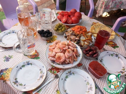 А сейчас немного кулинарии, но не подумайте, что я что то готовила, за весь отпуск к плите меня просто не пускали. А так мы с подругой и ее семьей посидели душевно во дворе вечерком.