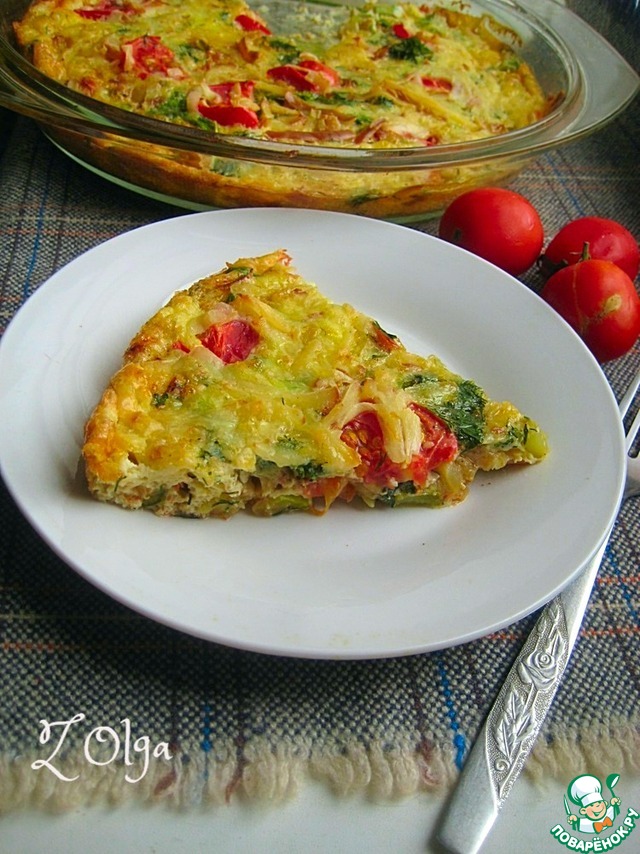 Фриттата с овощами https://www.povarenok.ru/recipes/show/142987/ по рецепту Надежды nadzezhda1! Отличное летнее блюдо! Сытное, красивое, быстрое в приготовлении! У меня без маслин/оливок и из зелени – укроп с петрушкой!