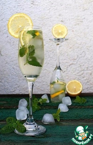 Единственное отступление от рецепта - две трети воды заменяю льдом, он потихоньку тает, напитываясь ароматами мяты и лимона.