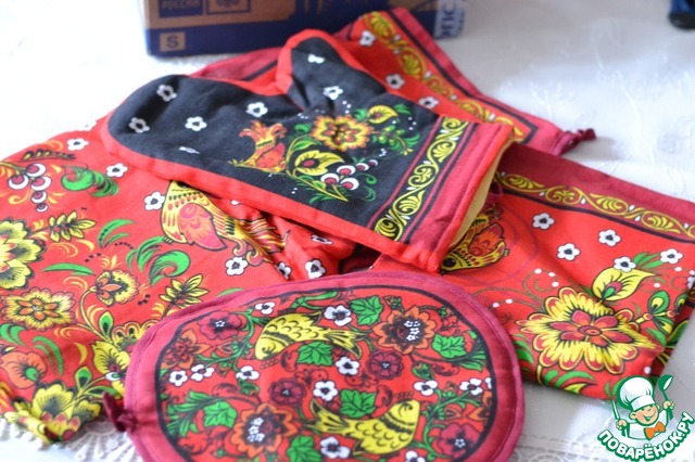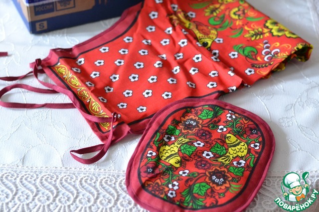 Внучка уже оценила... будет мне помогать на кухне в красном, расписном фартушке!