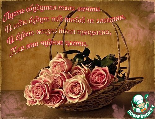 нашу замечательную Женю,-умницу, красавицу, искусного кулинара, подругу щедрую на сердечное общение, дарящую свою любовь многим-многим Поварятам!