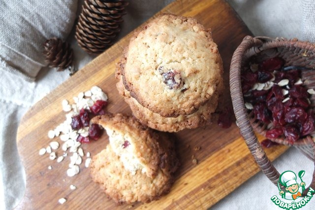 Потрясное печенье, рассыпчатое и хрустящее. Сахара положила в два раза меньше, и добавила вяленую клюкву.