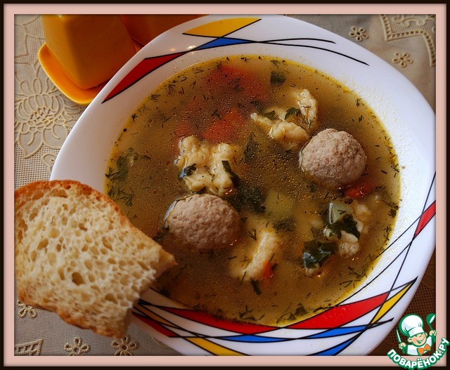 Суп с галушками и фрикадельками от Маши masha vet. Хороший, наваристый, вкусный супчик. Я еще себе сметанки добавила, одно удовольствие!