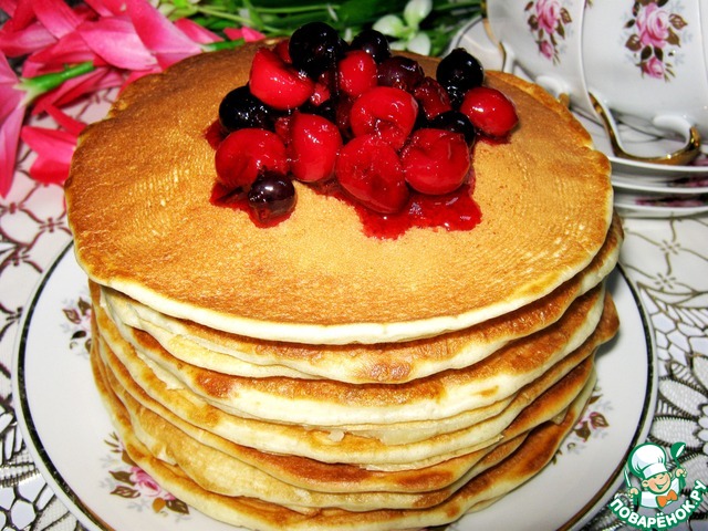 Я в восторге! Панкейки получились такими нежными, такими мягенькими! Просто прелесть! Получила огромное удовольствие от приготовления! Подавала с ягодным соусом. Очень вкусно!