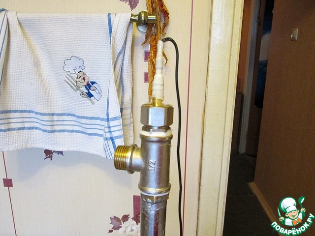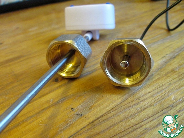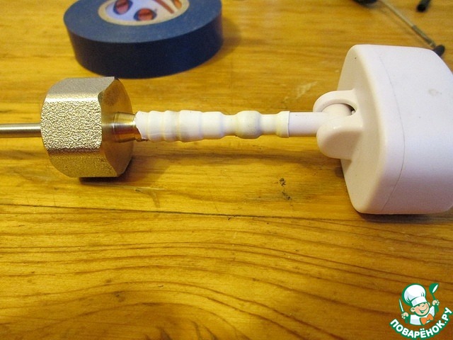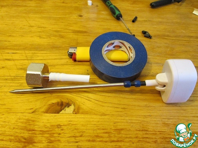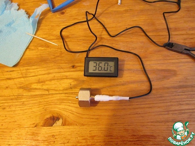 Встроим теперь второй термощуп, который в скороварке-перегонном кубе будет. Все тоже самое + синяя изолента, куда ж без нее