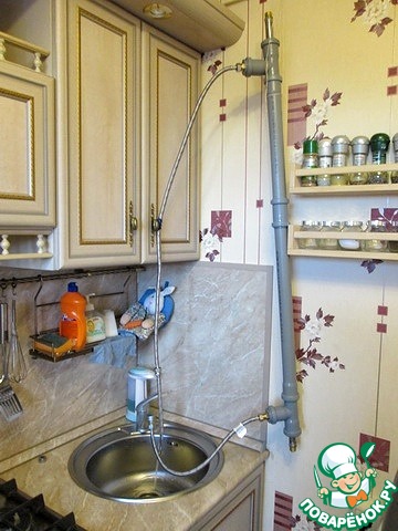 Выбрал место будущей установки, и начал прикидывать длину. Самое удобное место у меня на стенке, около раковины, места не занимает, не мешается и снимается легко.