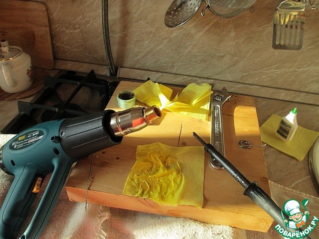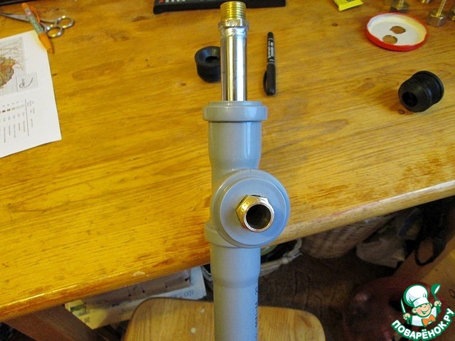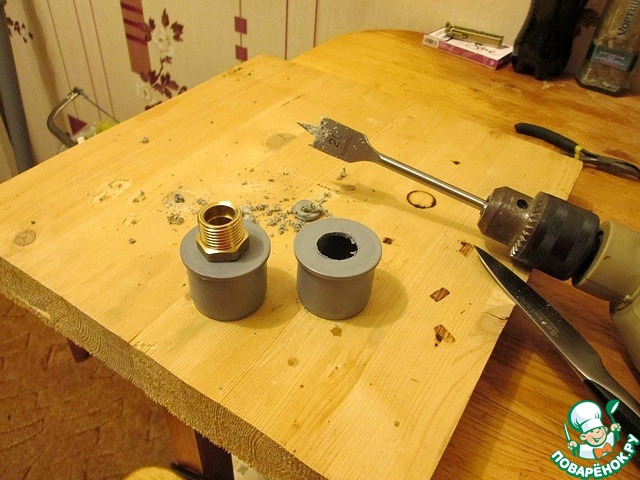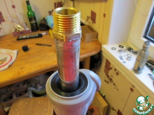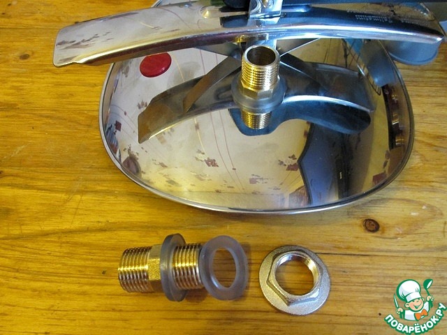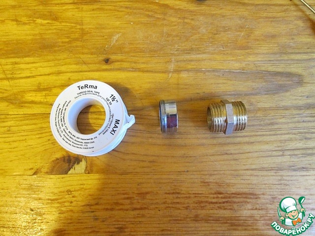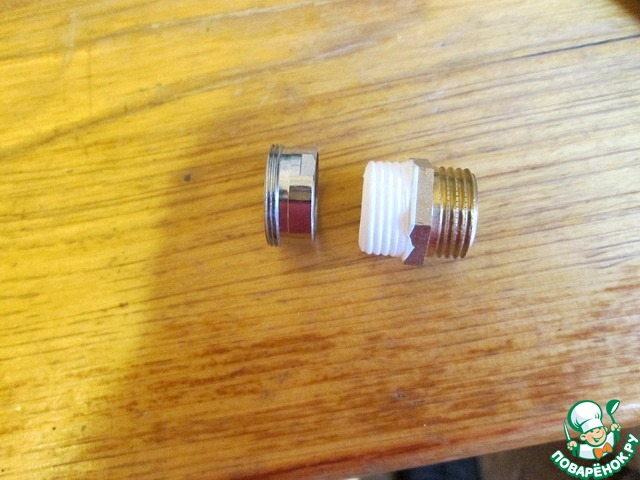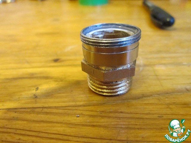 Теперь надо сделать переходник на кран, для подачи воды. У меня ввернут на выходе крана аэратор (интересно, правильно написал?