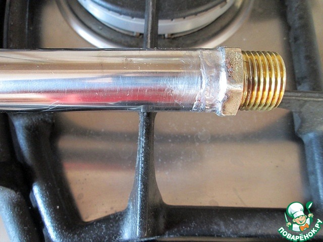 Определившись с типом изделия пошел на поиски комплектующих и вот, как специально, мне в хозяйственном магазине попалась прекрасная трубочка из нержавейки, всего 100 рублей, причем по размерам она с запасом покрывала мои потребности. Данная трубка носила название «Черенок из нержавеющей стали» типа ручка для швабры. Купил, дома проверил реально это нержавейка или нет, тесты магнитом, водой и пайкой подтвердили – Нержавейка. Ну и чудненько, забил ее размеры (1240х21) в «калькулятор» и выяснил что примерно на 3000 Ватт он будет. Что мне хватит по любому и с запасом хорошим, нагрев у меня до 2000 Ватт.