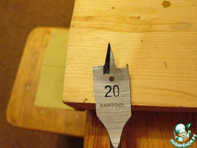 Теперь сделаем сверло для сверления отверстий в заглушках. Берем перо по дереву, двадцатку, и вот так вытачиваем, из фотографии понятно как. Точил болгаркой на малых оборотах но можно чем угодно, хоть надфилем