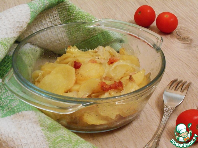Потрясающее по простоте и вкусноте блюдо! Вместо сала использовала бекон. Просто чудесный ужин за минимальное время! Готовила сразу 2 порции, но, похоже, можно было и больше. Съели всё!