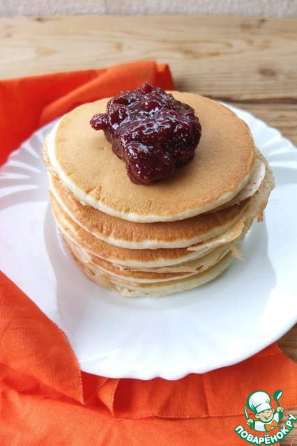 Панкейки с ягодами на старинный манер Вкусные, пушистые панкейки! Готовила на электроблиннице, ягод не было, поэтому кушали с земляничным вареньем!