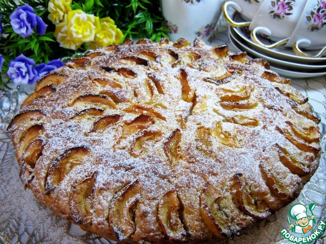 Пирог роскошный! Такой воздушный, невероятно нежный, мягенький! Аромат изумительный! И к тому же он такой симпатичный! У меня ранетки, перед выпечкой посыпала сверху сахарком, яйца не отделяла. Пирог слегка посыпала сахарной пудрой. Очень-очень вкусно! Приятно было полакомиться!