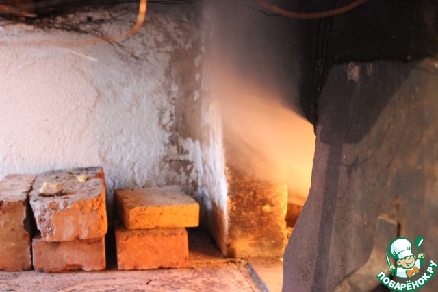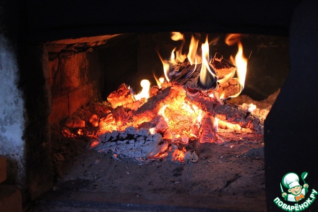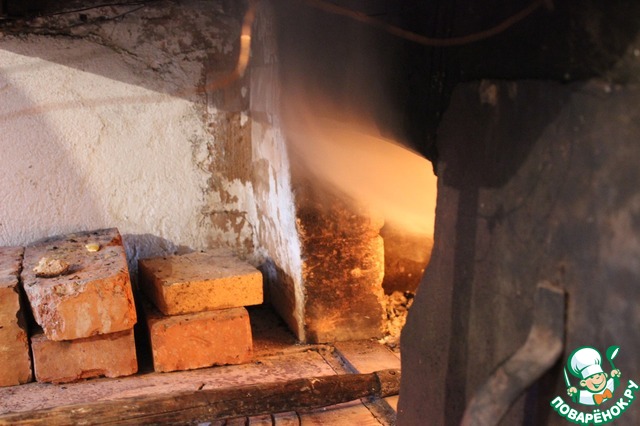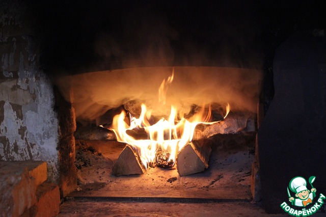 Когда все прогорит, в недры печки отправится кастрюлька с брусникой...