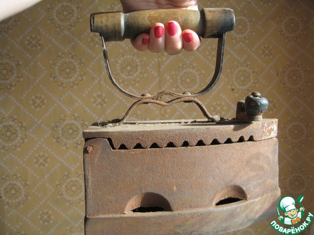 Понравился старинный утюг и " современная " рука с ярко накрашенными ногтями, которая держит этот утюг