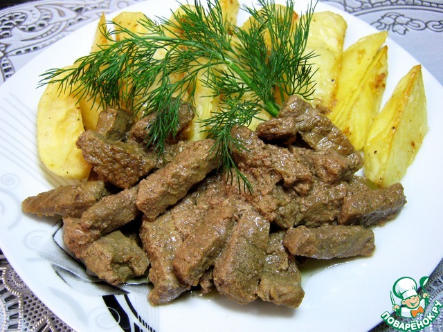 Отличное мясо! Нежное, мягкое, ароматное, со сливочным вкусом и пикантностью горчицы. Хотелось лука добавить, но от рецепта не стала отступать)). Вкусно!
