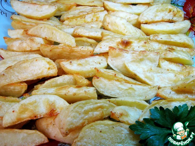 Замечательная картошечка получилась! Нежная, с тонкой, золотистой, хрустящей корочкой. Я порезала помельче, добавила любимых специй. Вкусно!