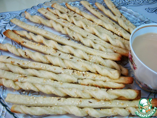 Потрясающе вкусные палочки из самых простых продуктов! С тестом приятно работать. Посыпала солью, тмином и кунжутом. Часть палочек я свернула спиралькой. Очень вкусно получилось! Похрустели с большим удовольствием! Буду готовить обязательно! Подумала, что можно прямо в тесто добавить красного молотого перца для остроты. Можно использовать каждый раз новые специи, тут полёт фантазии не ограничен.