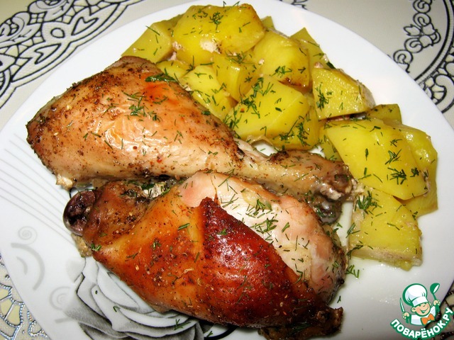 Блюдо замечательное! Курочка сочная, с румяной корочкой, картошка такая мягкая нежная! Очень вкусно и ароматно! Картошку я не отваривала, запекала сначала, накрыв фольгой. Форму взяла побольше, чтоб молоко не сбегало. Всё отлично получилось, блюдо нам понравилось!