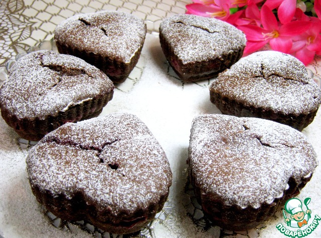 Замечательное шоколадное пирожное! Влажное внутри, с насыщенным вкусом и ароматом! Одно из любимых сочетаний вишни и шоколада. У меня получилось шесть пирожных. В тесто я добавила чуть больше муки, слишком жидко было и вишни положила 150 гр, этого было вполне достаточно. Ягода замороженная, обваляла её в муке. Выпекала 35 минут. Очень вкусно!