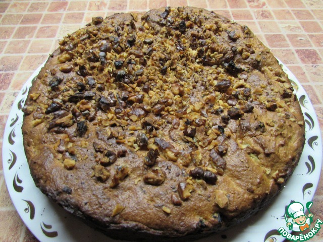 Наконец-то испекла! Аромат стоял - словами не передать! Очень вкусный получился. Форма оказалась великоватой, поэтому не такой высокий. В следующий раз добавлю побольше орехов и чернослива. Выпекала 50 минут.