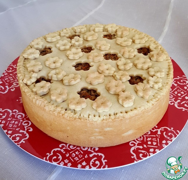 Бесподобный вкусный сытный красивый и самое приятное абсолютно беспроблемный в приготовлении пирог! Тесто сказочное пластичное и эластичное, лепи хоть зАмки! Идеальный рецепт! Пекла в форме 26см ровнёхонько двойную порцию.