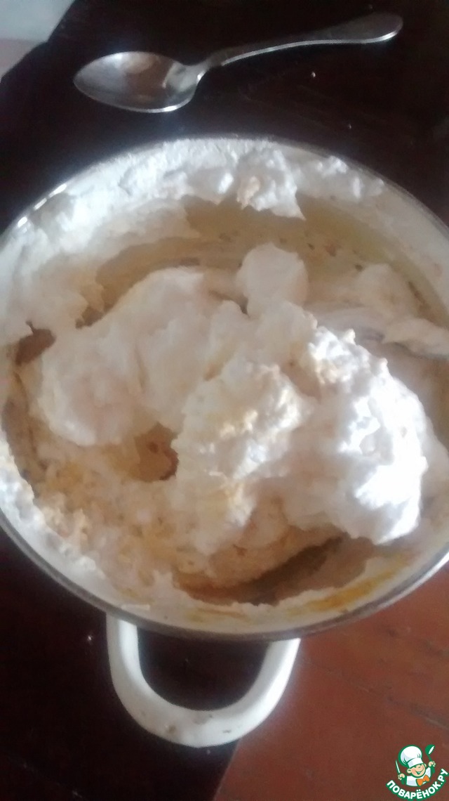 Взбила в крепкую пену 3 белка с 1 ст. л. сахара и добавила к тыквенной массе.