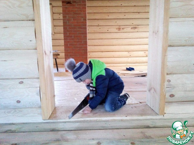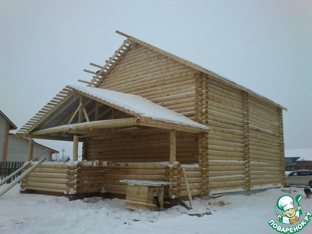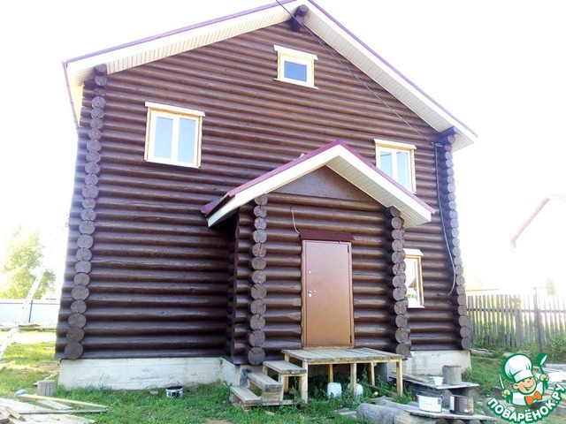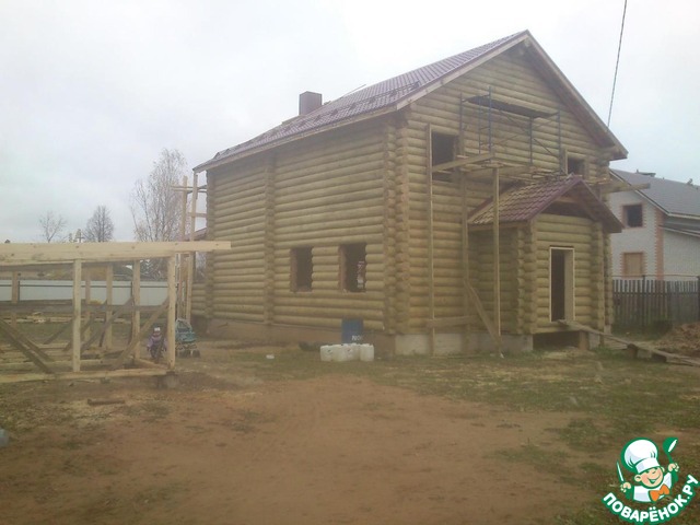 Весной 2016 сделали крышу, пропилы окон и дверей