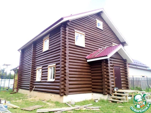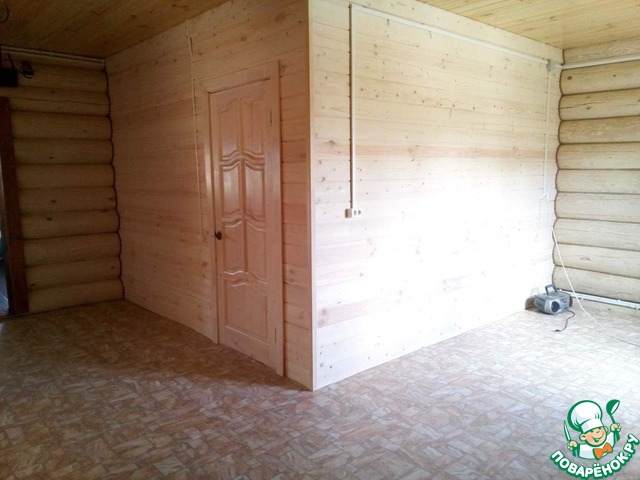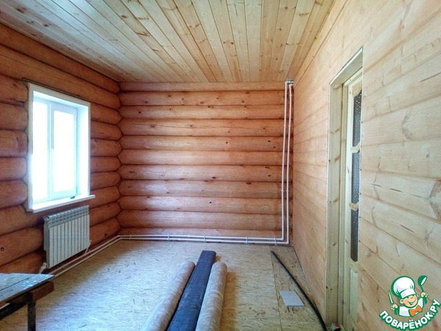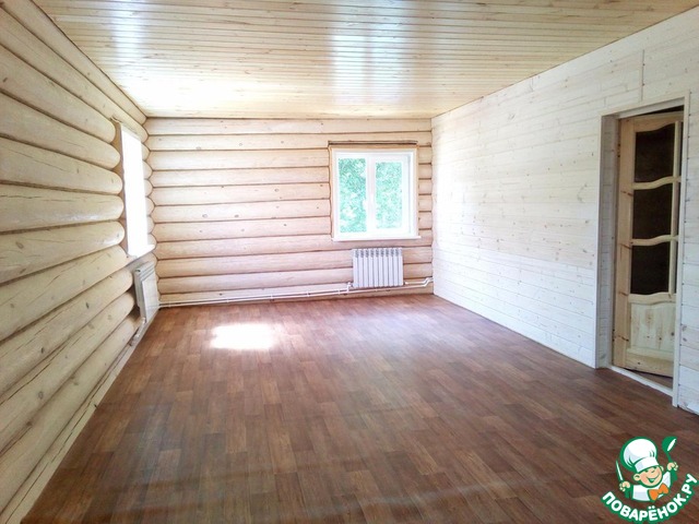 Внутри дома ..так дерево же. и на фото это видно. сруб он и есть сруб. дерево шлифуют, обрабатывают био защитой(от плесени, жучков, грибков) можно и огнео защитой. потом грунтуют. и покрывают красками . точнее, даже не краской- лазурью. на водной основе. воск и красители. дерево "дышит" под такими красками. они абсолютно без запаха.