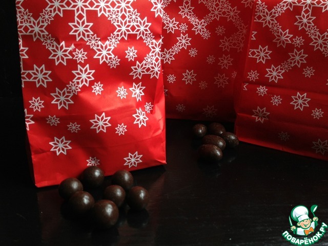 Орешки в шоколаде разных размеров и форм в красивой, новогодней упаковке. ( ушло в зрительский зал детям)))).