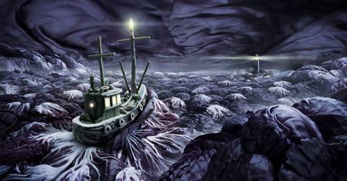 Например, шторм на следующей фото сделан целиком и полностью из капусты: