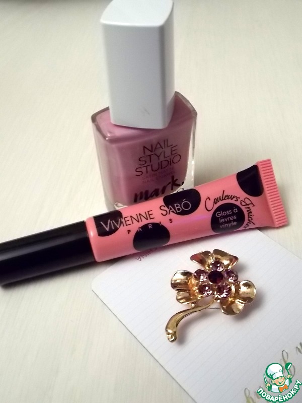 И конечно Леночка позаботилась о моей красоте. Лак очень понравился. Просто супер-пупер. И блеск моей любимой фирмы. А какая брошь.