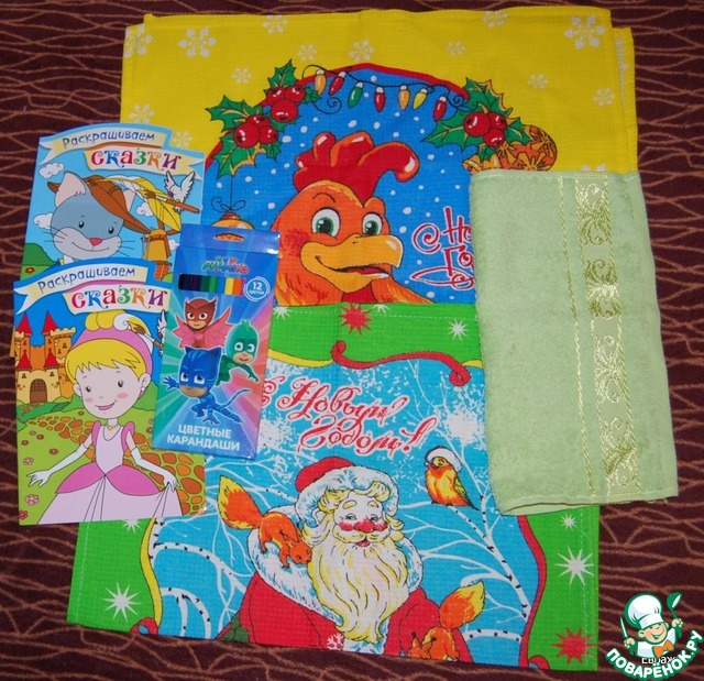Новогодние полотенчики, раскраски и карандаши для дочки. Обрадую ее после садика!
