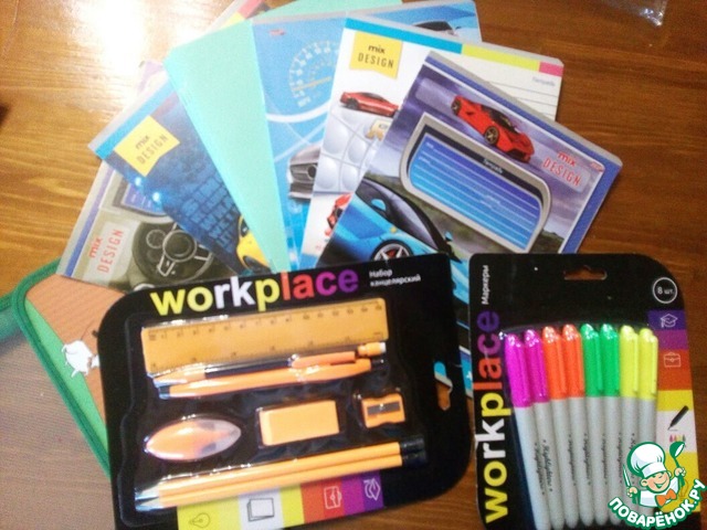 моему первокласснику целый набор канцтоваров- на все случаи жизни.