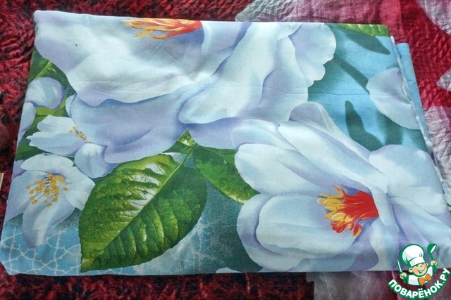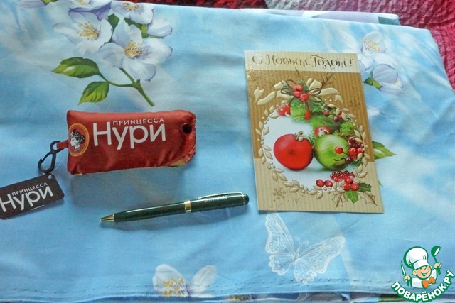 А в подарке этом были: замечательный красивый комплект постельного белья, ручка (думаю для записи любимых рецептов), складная сумочка (продукты для рецептов покупать