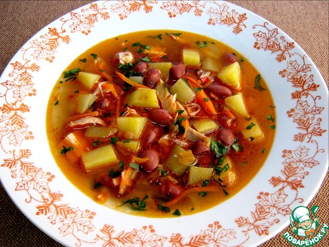 Замечательный супчик! Вкусный, сытный, согревающий, с легкой приятной остротой. Фасоль у меня красная, перец добавила свой, маринованный.