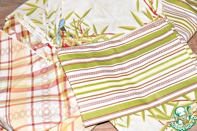 Первый комплект семейный: два наволочки, огромная простынь и большой пододеяльник,