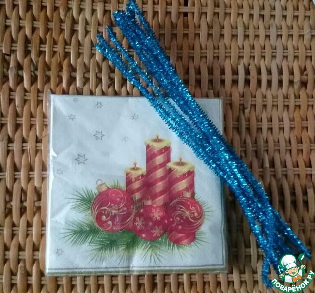 Салфеточки, тоже новогодние, обожаю их! А рядом с ними такие прикольные штуки, которые мой супруг в шутку назвал ершиками))) На самом деле, понятия не имею, что это, у меня таких никогда не было) Хотя, я уже больше 2-х лет дома, так что вполне просто отстала от жизни))) Но штуки прикольные, они гибкие, их можно привязать куда угодно - хоть на елочку, хоть куда!
